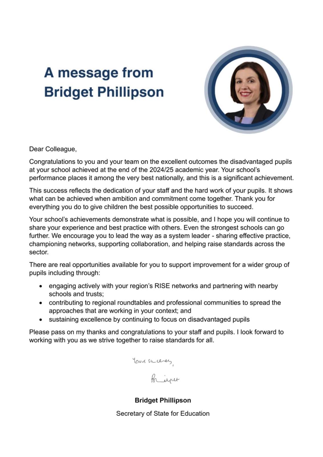 St Paul’s recognised by the Department for Education for the excellent outcomes disadvantaged pupils at our school achieved at the end of 2024/2025. Our performance places it among the very best nationally.